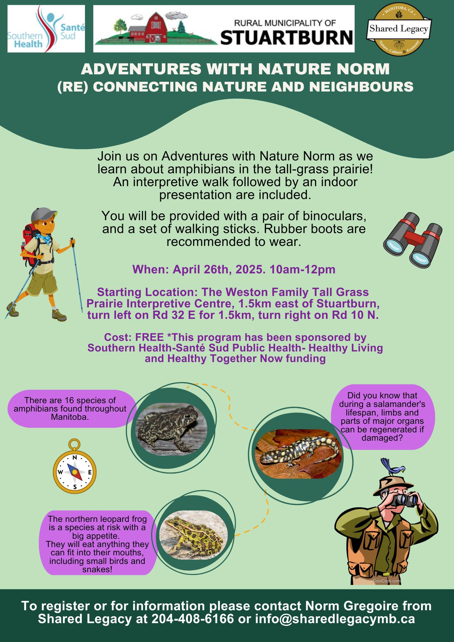 Join us on Adventures with Nature Norm for a morning of learning about amphibians in the tall-grass prairie, while enjoying the great outdoors!