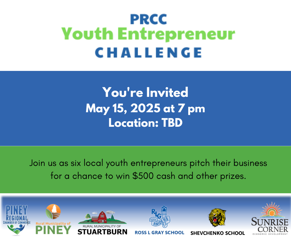 Join us as six local youth entrepreneurs from the RMs of Stuartburn and Piney pitch their business for a chance to win $500 cash and other prizes.