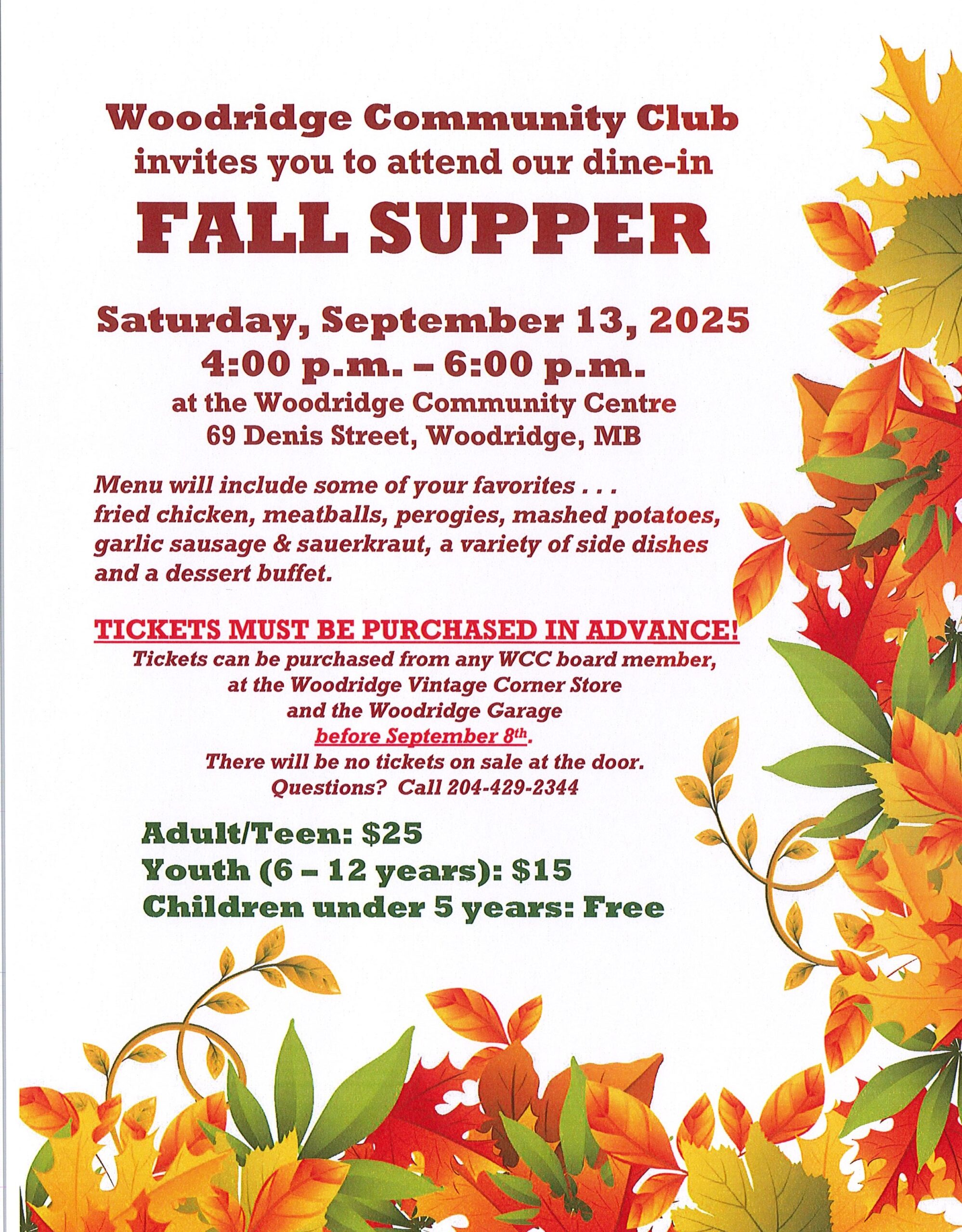 Woodridge Community Club invites everyone to attend their dine-in fall supper.