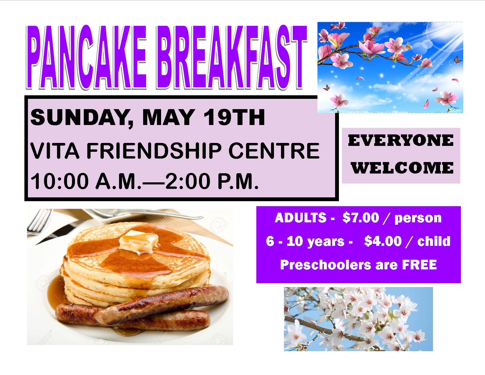 This event has passed. Pancake Breakfast August 25, 2024 @ 10:00 am - 2:00 pm « RM of Piney Forest Tours Southeast Farmer’s Market » Gather your family and friends for a morning out – everyone is welcome! Vita Friendship Centre, Sunday, August 25, 2024 Adults $7 Children 6-10 years $4 Preschoolers FREE Organizer: Vita Friendship CentreVenue: Vita Friendship CentreAddress: 226 Home St