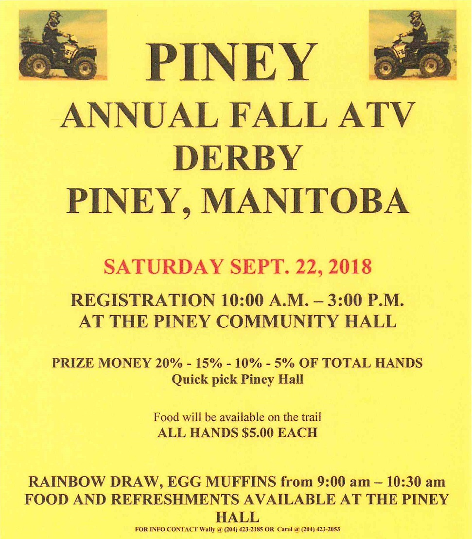 All hands are $5.00 ea., food & refreshments available at the Piney Hall